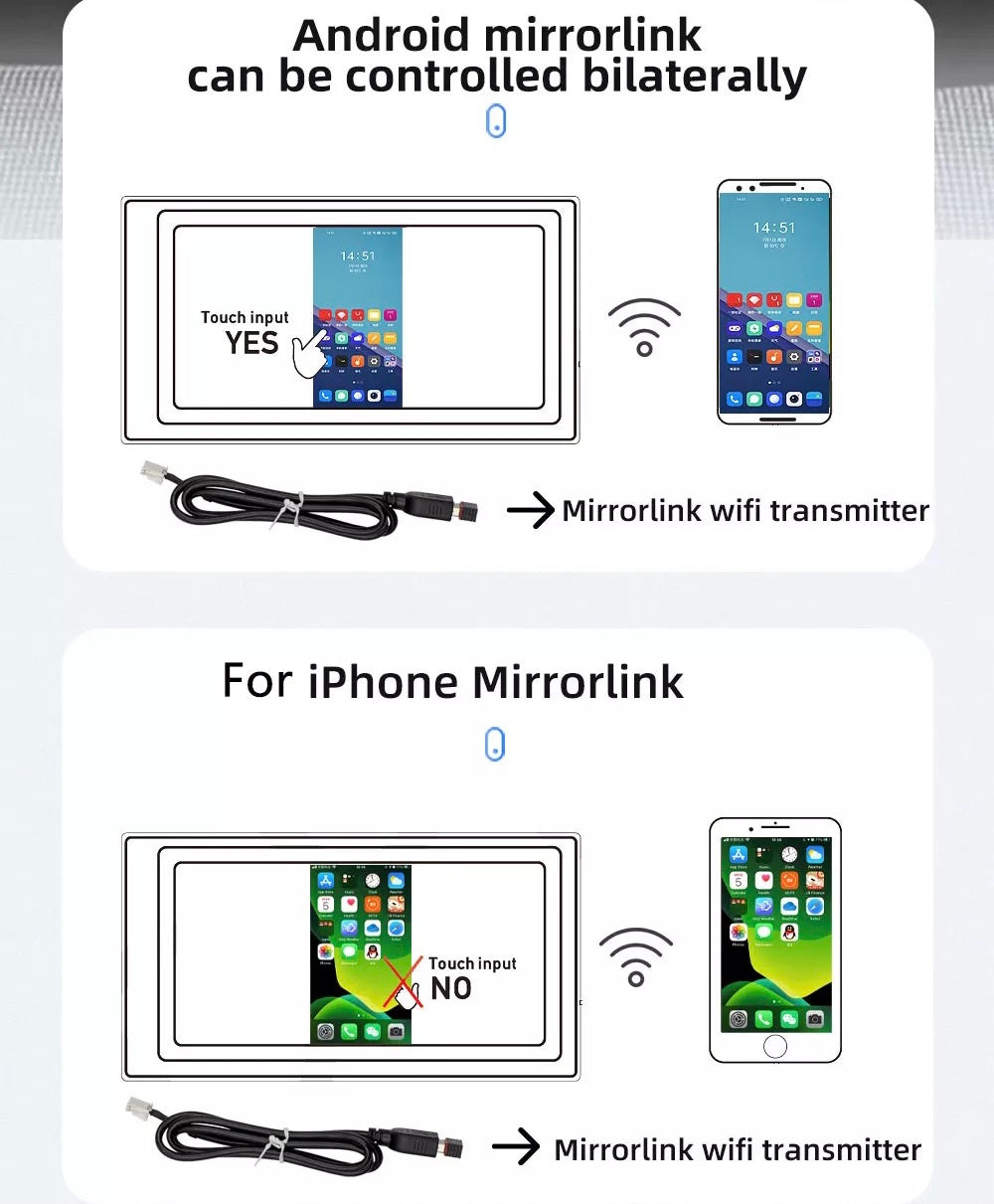 4、Support Wired Carplay: Support the wired Carplay function of for Apple mobile phones, wireless mobile phone interconnection Mirrorlink (for Android / for Apple).