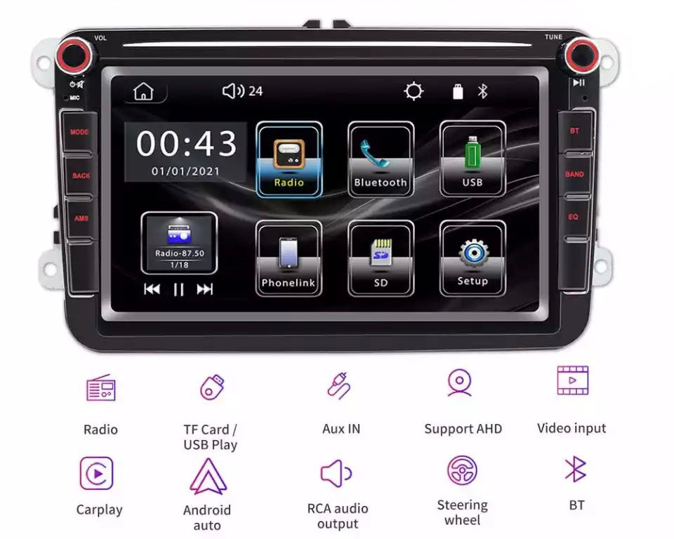 Car Stereo Suit VW Golf MK5 MK6 with Apple CarPlay / Android Auto Car Stereo Double DIN Head Unit, BluetoothDescription:New 8'' Inch Touch...