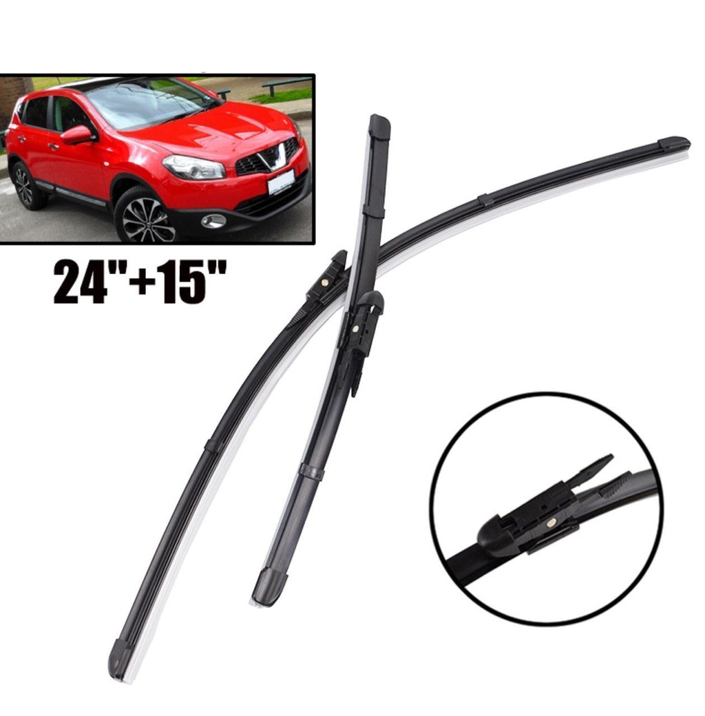Pair of Front Wiper Blades For Nissan Dualis Qashqai J10 2006 - 2013 Windshield Windscreen Front 24"+15"