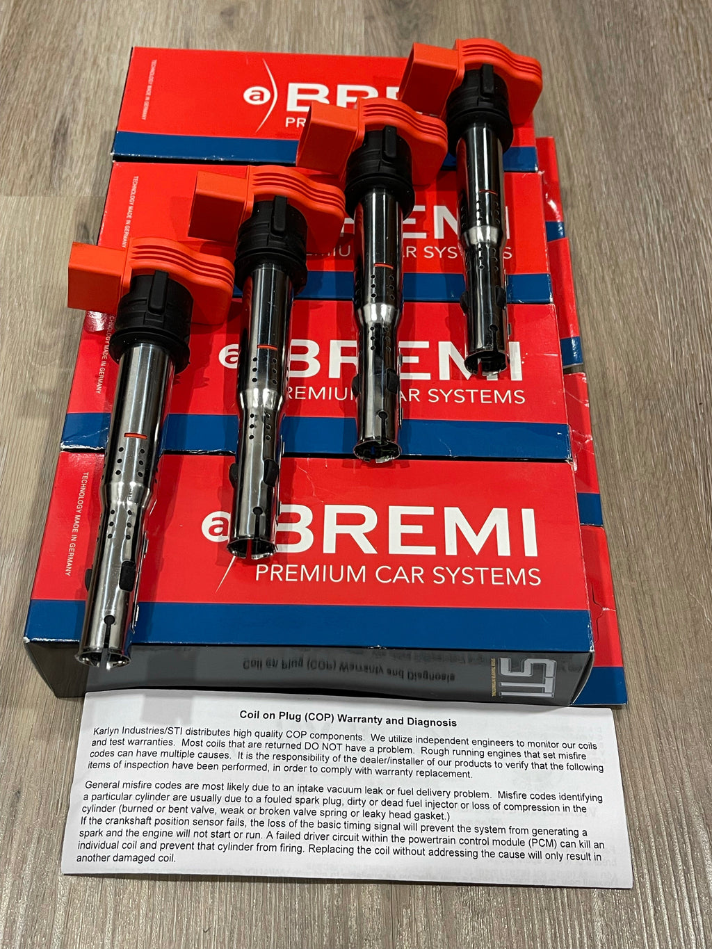 Set of 4 x Bremi STI OEM Audi R8 Coil Packs Ignition Coils 06E905115G Suit VW Audi Skoda all 2.0 FSI TFSI TSI EA113 / EA888 Generation 1 and 2, including 1.8TSI