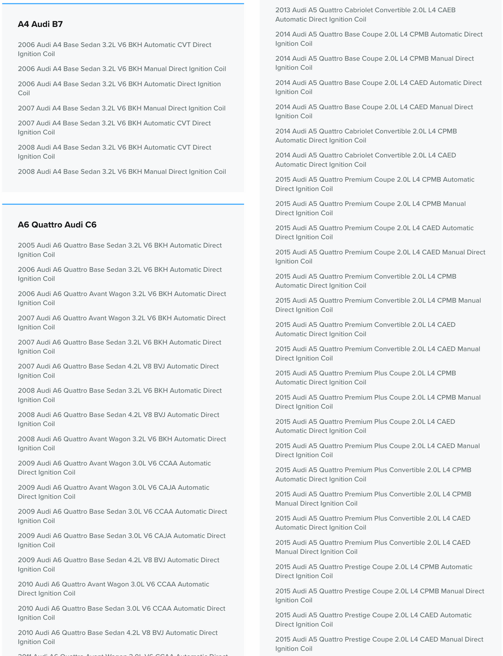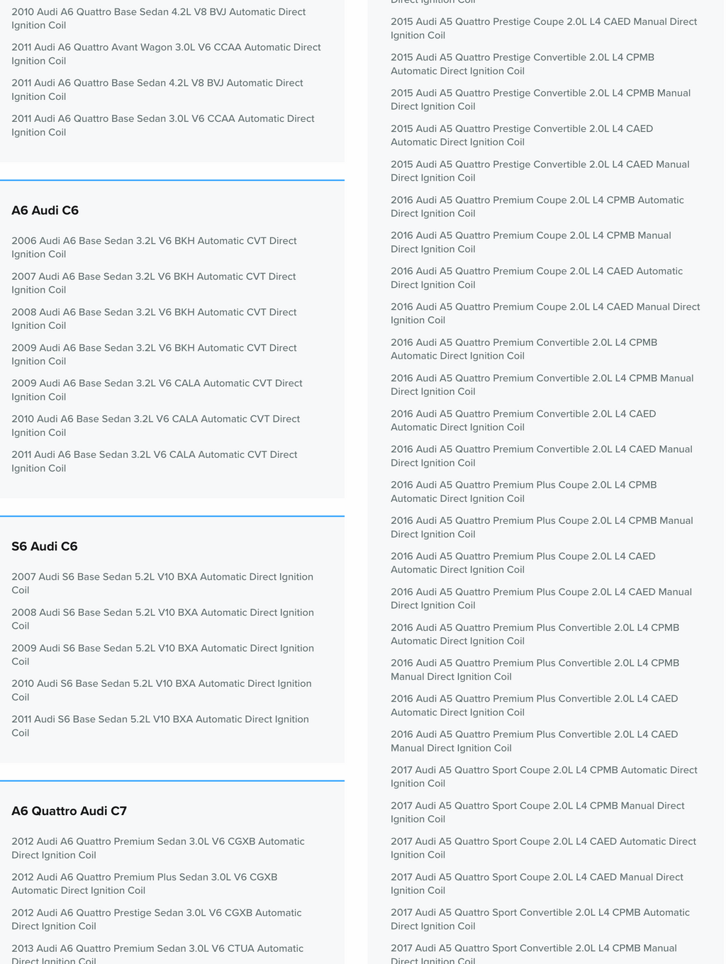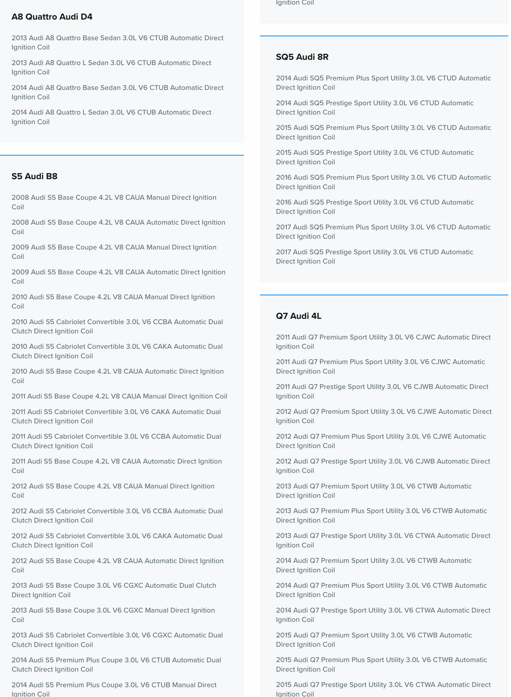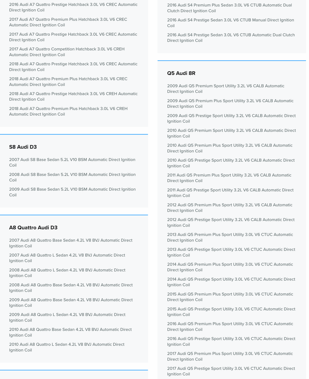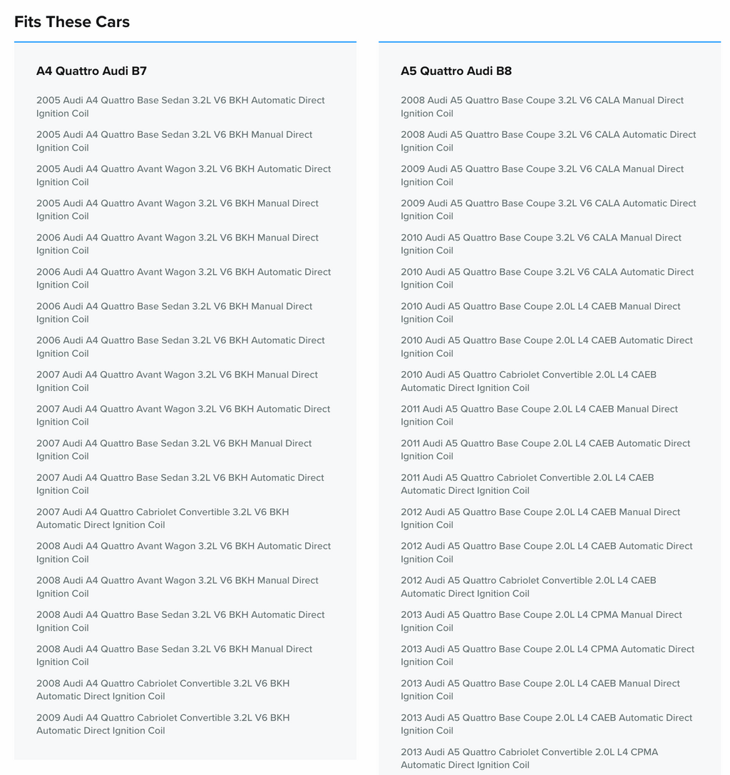 Audi R8 Ignition Coils, Equivalent of 06E905115G latest revision coil packs Upgrade Kit - VW Golf MK5 MK6 R GTI, Jetta, CC, S3 8P, A3, A4, A5, A6, TT