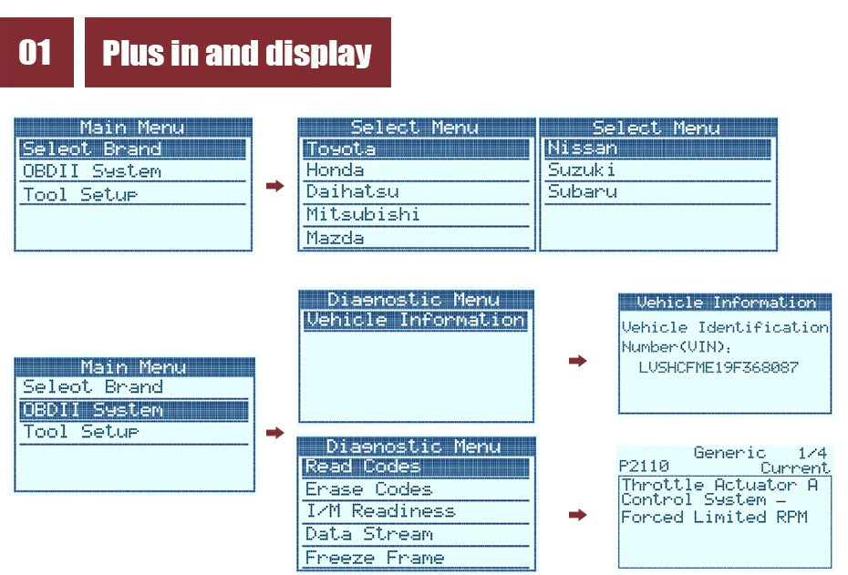 3. OBD2 Function Including: Read code, Remove code, Live data, Freeze frame, I/M readiness, Vehicle Information reading