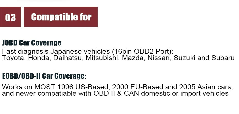 Asian car : Works on OBD2 Cars from 2005 to Now :
