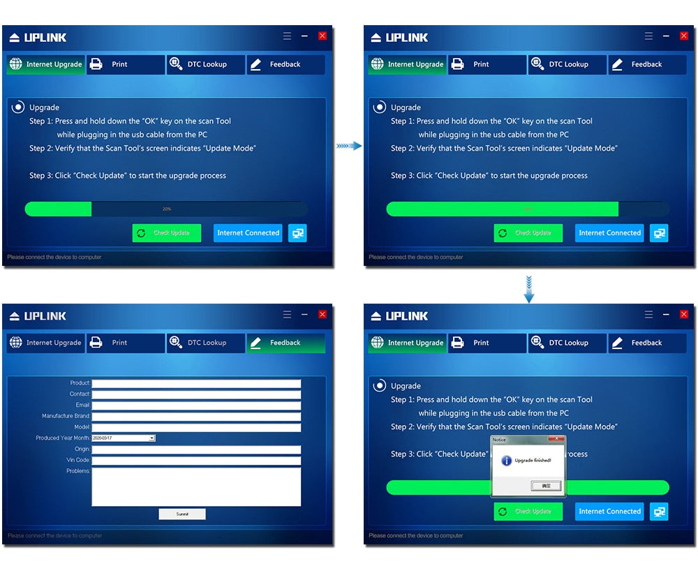 5. Life time free update is guaranteed, self-developed software will be continuously adding more features and functions into KW350, professional feedback system via Uplink™, better than VAG COM / VCDS