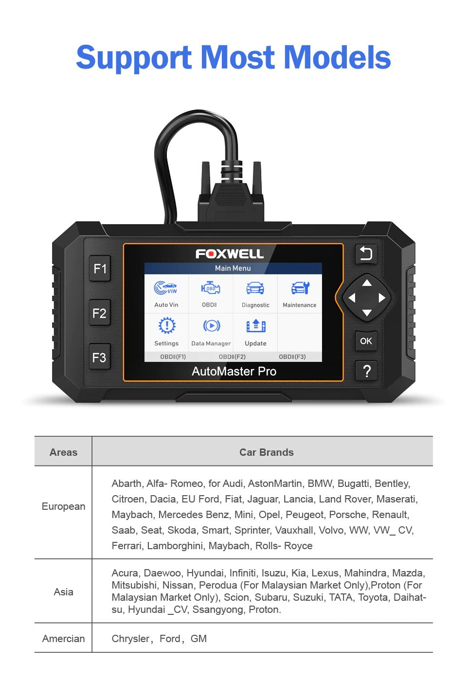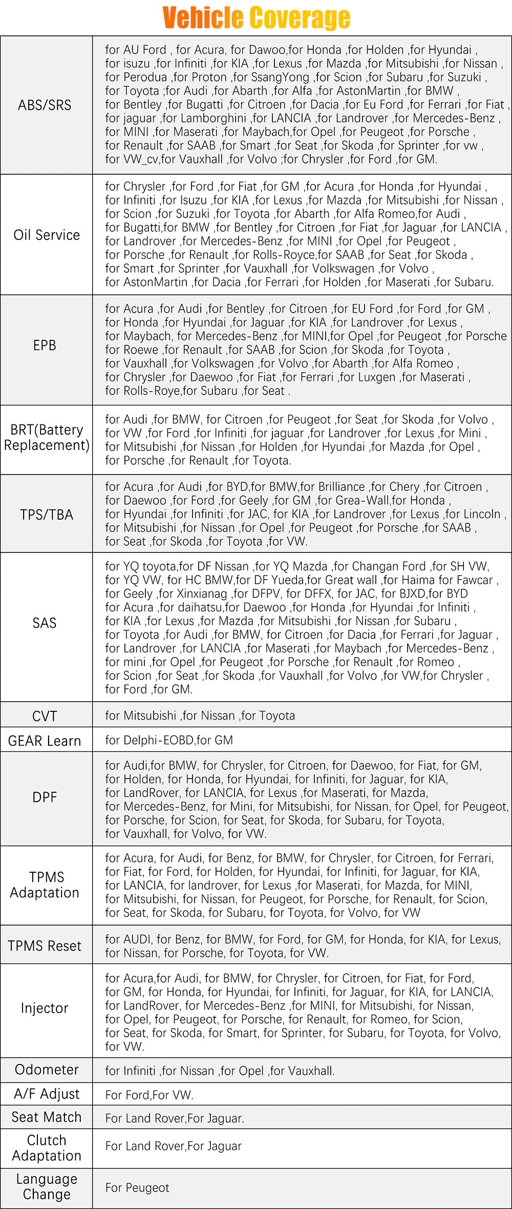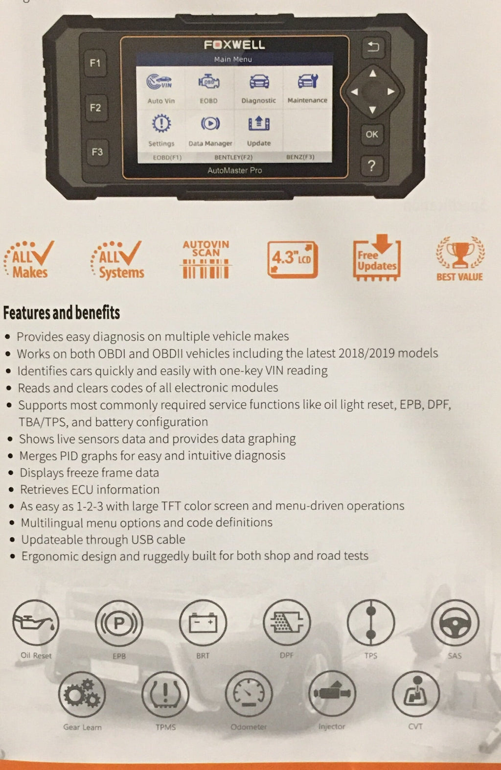 -Powerful Functions: support full system diagnostic, 19 Reset Service, meet your all needs.