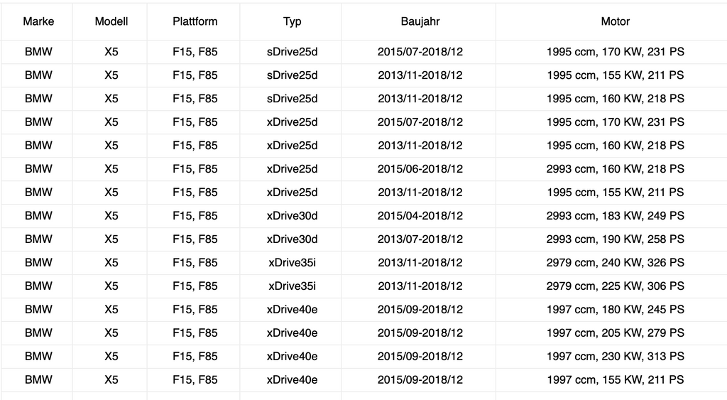 BMW X5 F15, F85 xDrive25d 2015/06-2018/12 2993 ccm, 160 KW, 218 PS