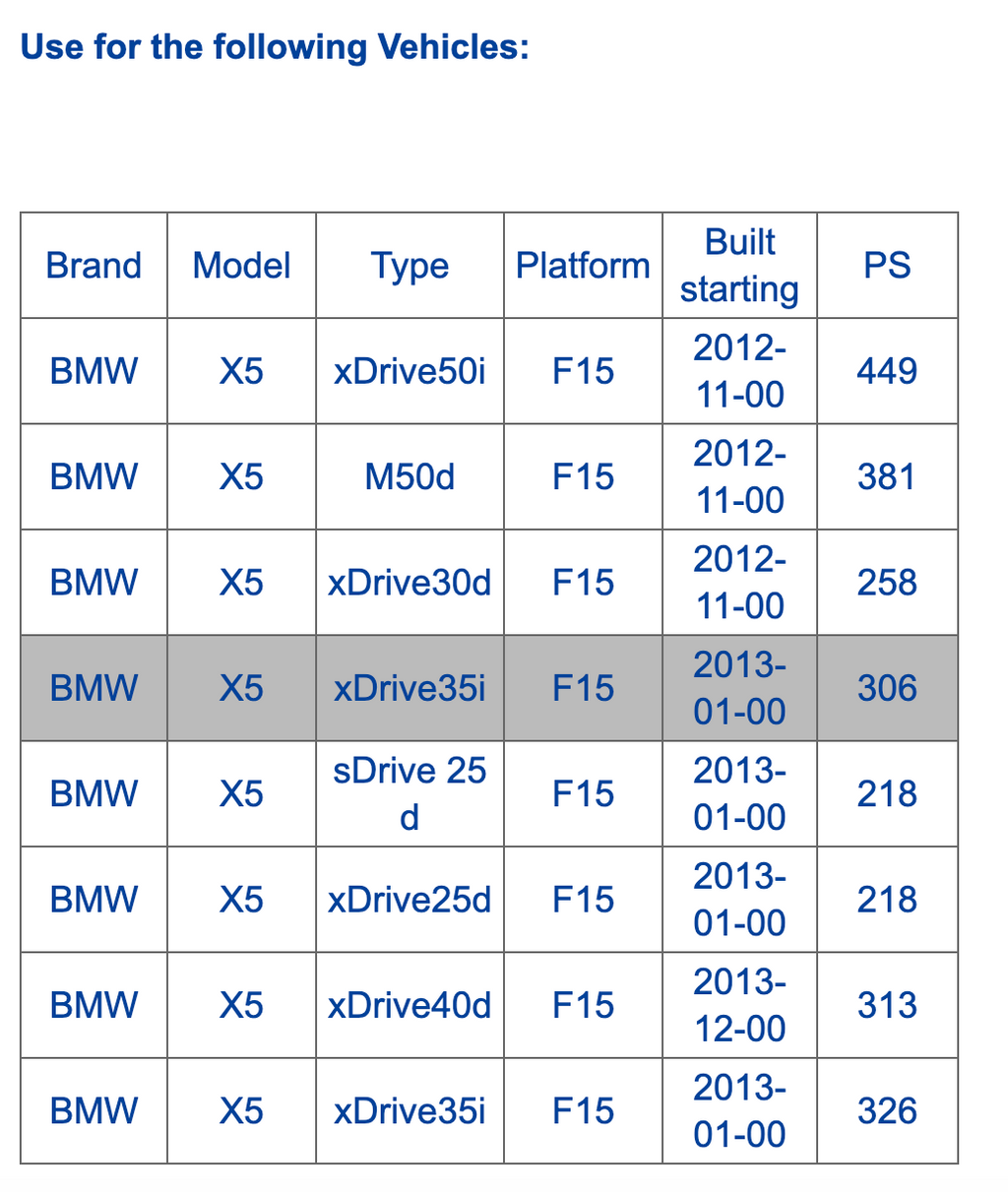 BMW X5 F15, F85 xDrive35i 2013/11-2018/12 2979 ccm, 240 KW, 326 PS