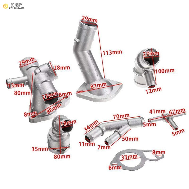 6PCS Car Aluminum Coolant Flange Upgrade Kit For VW Golf MK4 For Jetta GTI 1.8T 2000-2005 For Audi TT 2000-2002 Audi A3 1.8T 06A121133J